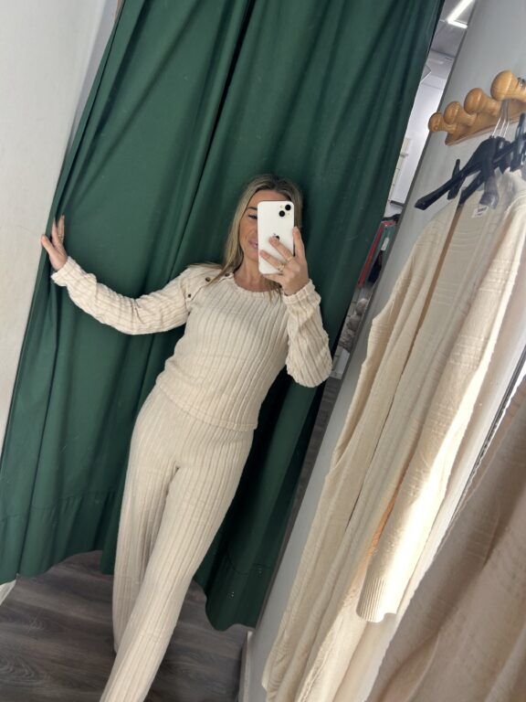 conjunto beige boton